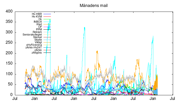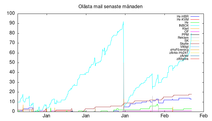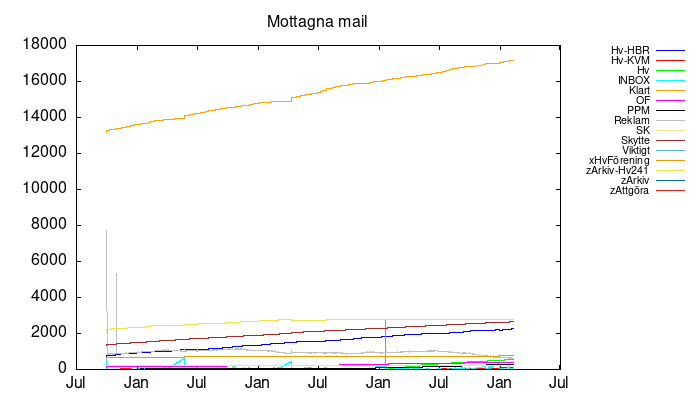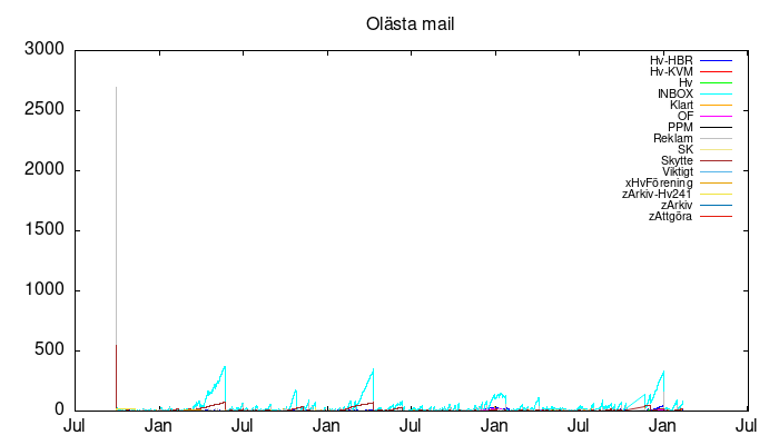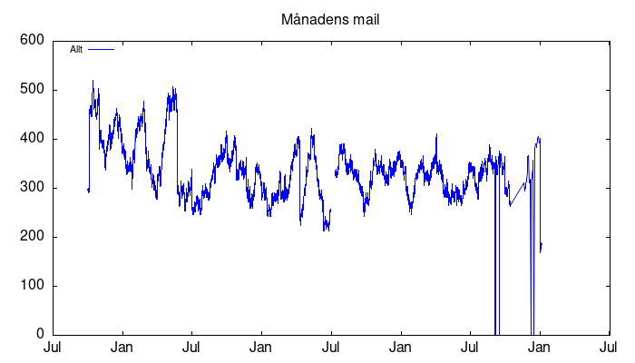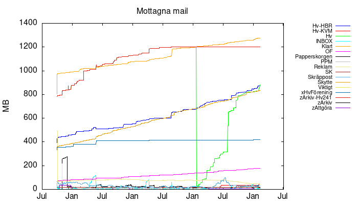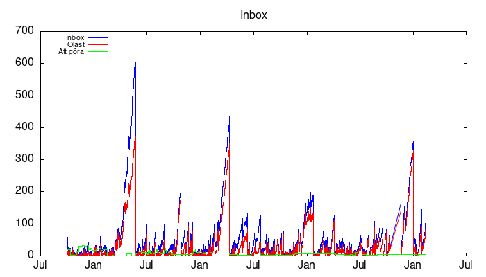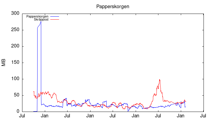 | Skräppost | 631 | 625 | 631 | 30 Mb |